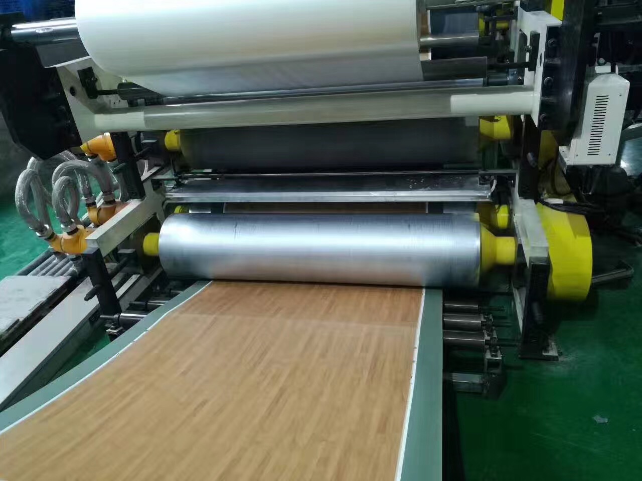 全新復(fù)合結(jié)構(gòu)的pvc軟質(zhì)復(fù)合地板生產(chǎn)線是突破一系列技術(shù)難關(guān)研發(fā)出來的,該生產(chǎn)線填補(bǔ)了國(guó)內(nèi)市場(chǎng)的空白,可完全取代傳統(tǒng)的蒸汽模壓復(fù)合工藝。