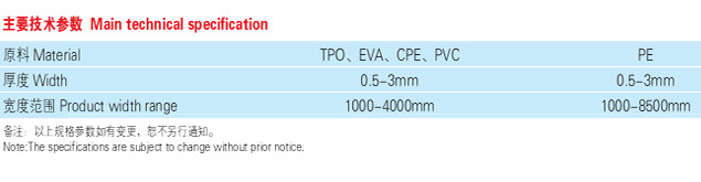 產品適用:工業與民用建筑的屋面防水,包括種植屋面、平屋面、坡屋面、建筑物地下防水:包括水庫、堤壩、水池防水、隧 道、糧庫、人防工程、垃圾掩埋場、人工湖防水等。