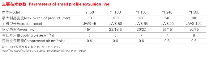 本公司吸取了國內外先進技術,成功開發出適合用戶需求的小型材生產線。該機組有單螺桿擠出機或雙螺桿擠出機、真空定型臺、牽引機、切割機、翻料架等幾部分組成,生產線具有塑化好,產量高,能耗低等顯著特點。主機采用進口交流變頻器調速,溫控儀表采用日本RKC或富士產品。輔機真空泵和牽引電機均采用優質產品,維護簡便。