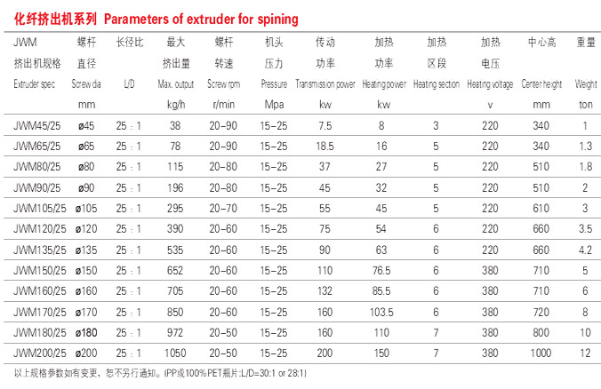 JWM系列螺桿擠出機主要用于PET、PA6、PA66、PP等切片的熔融紡絲。本產(chǎn)品集十幾年的經(jīng)驗與技術(shù),在行業(yè)中每年銷量巨 大,目前已有數(shù)千臺擠出機在700多家化纖工廠及無紡布工廠正常運行。