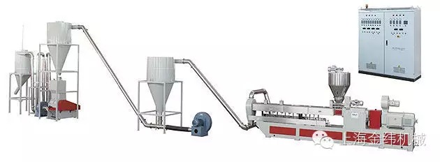 b,造粒設(shè)備的選擇。用于PP/PE木塑造粒有錐雙和平雙兩種,錐雙造PP/PE木塑粒效果不是很好主要是纖維難分散易團(tuán)聚,這樣影響產(chǎn)品的使用如:產(chǎn)品吸水率較高,易發(fā)霉等。平雙不會(huì)出現(xiàn)纖維團(tuán)聚的現(xiàn)象,國內(nèi)PP/PE木塑造粒基本采用平雙造粒。金緯旗下的大云塑料回收輔助設(shè)備制造有限公司生產(chǎn)的造粒機(jī),造粒后直接破碎,物料進(jìn)入擠出機(jī),省時(shí)節(jié)能。