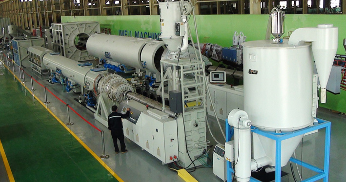 管材主機的螺桿機筒設計在向加長長徑比方向發展,最直接的效果就是單位重量原料的能耗可以降低。