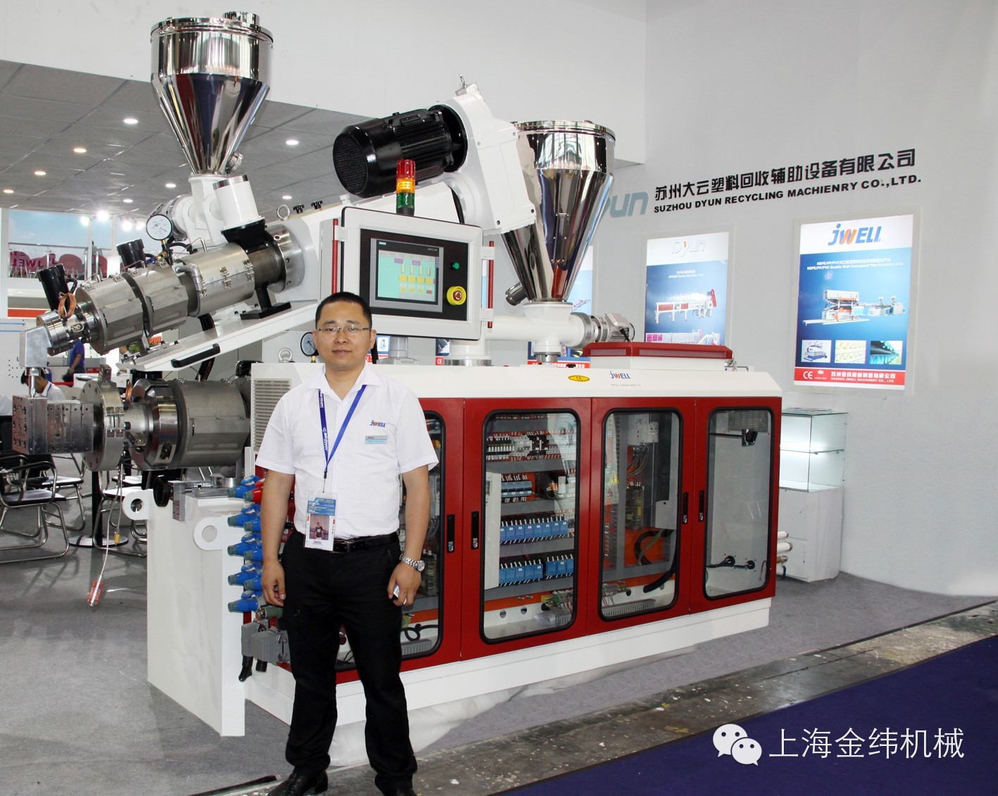 工業自動化是目前生產企業最關注的話題。本次展會特設的“工業自動化專區”異常火爆。金緯公司也在展位現場隆重舉辦了“共同開啟擠出裝備工業4.0之旅”新聞發布會。標志著金緯機械正式開啟擠出裝備工業4.0之旅。目前我們主要著力打造售后、售中智能服務,就維保、設備故障、海外服務、遠程專家支持調試以及產品生產過程中與客戶的交流溝通等問題提供最為及時高效的解決方案。此次在展會現場我們展示了上海工廠、蘇州工廠、東莞工廠以及展會現場四地設備遠程數據檢測診斷,實時互聯互通的實際情況。目前金緯公司在大部分的生產線上配備了具有上網功能的西門子觸摸屏,客戶公司的管理者在世界的任何有因特網的地方,通過PC,IPAD或者IPHONE都能遠程監控到自己工廠內的生產數據。未來,金緯機械要打造成全球高分子裝備行業的智能制造平臺。