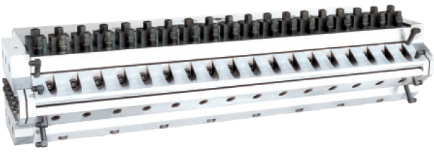 一、拆卸模唇油管并固定在模具架上〈要求油管口高于模溫機(jī)油箱內(nèi)油面〉用專用堵頭擰在模唇出油口以防出油。